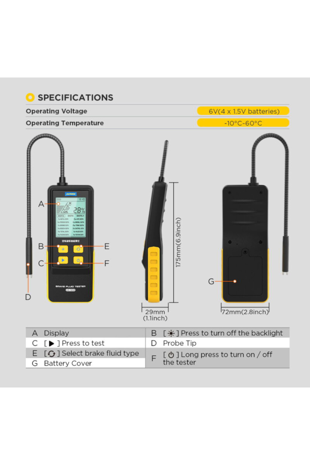 - Napon napajanja: 6 V (4 x 1.5 V baterije);