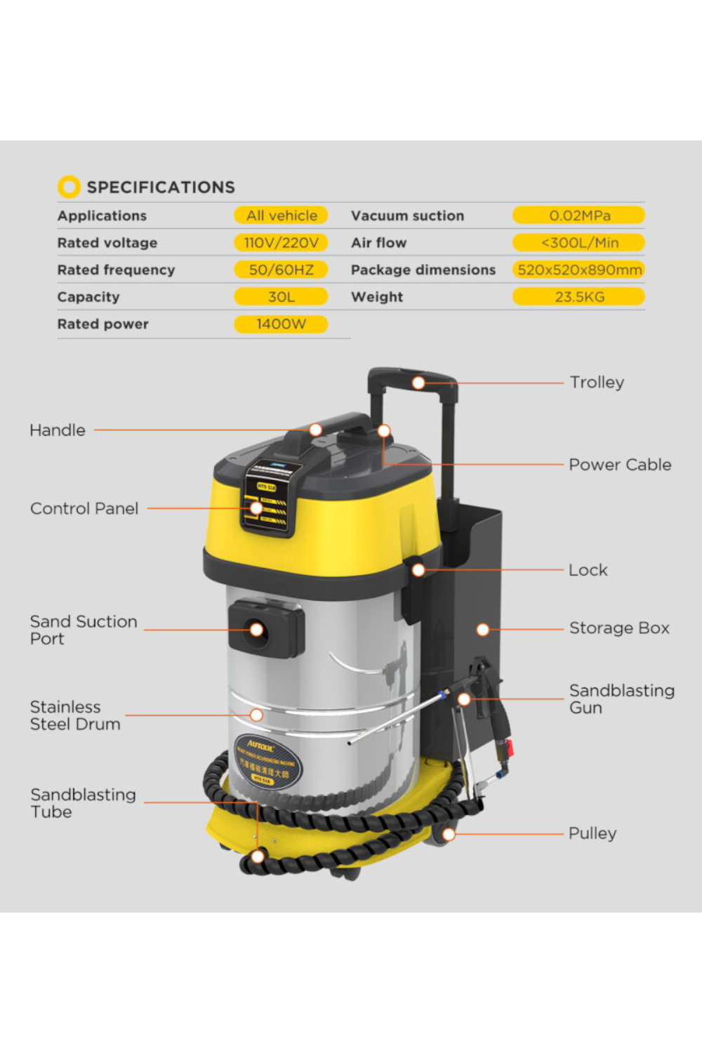 - Kapacitet abrazivnog sredstva: 30 L;