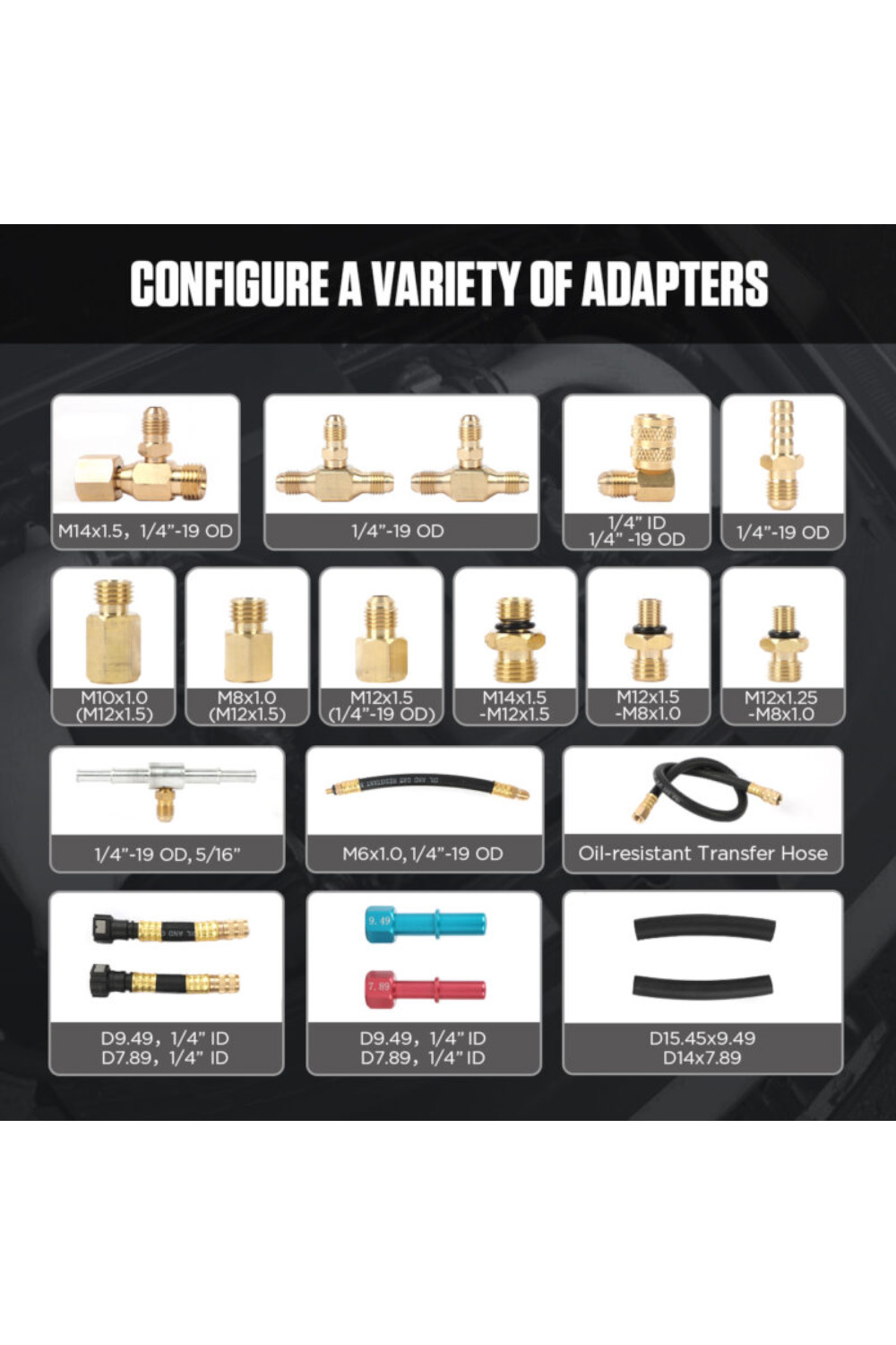 Uređaj se isporučuje sa 17 dodataka za povezivanje sa sistemom napajanja gorivom.