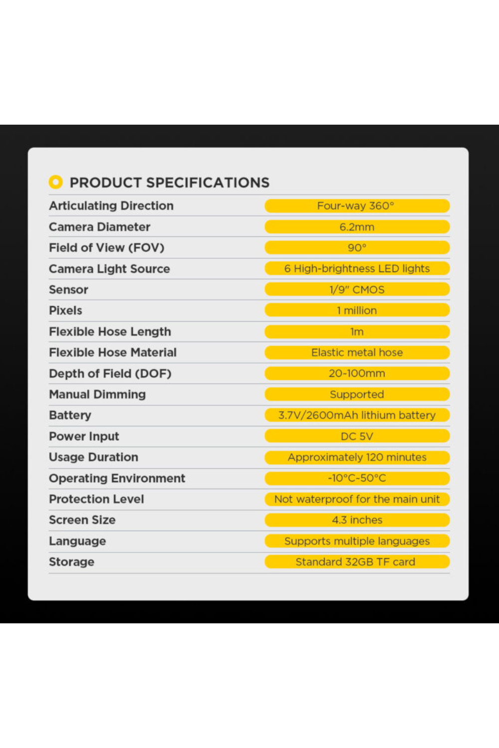 - Dijametar kamere: 6.2 mm;
