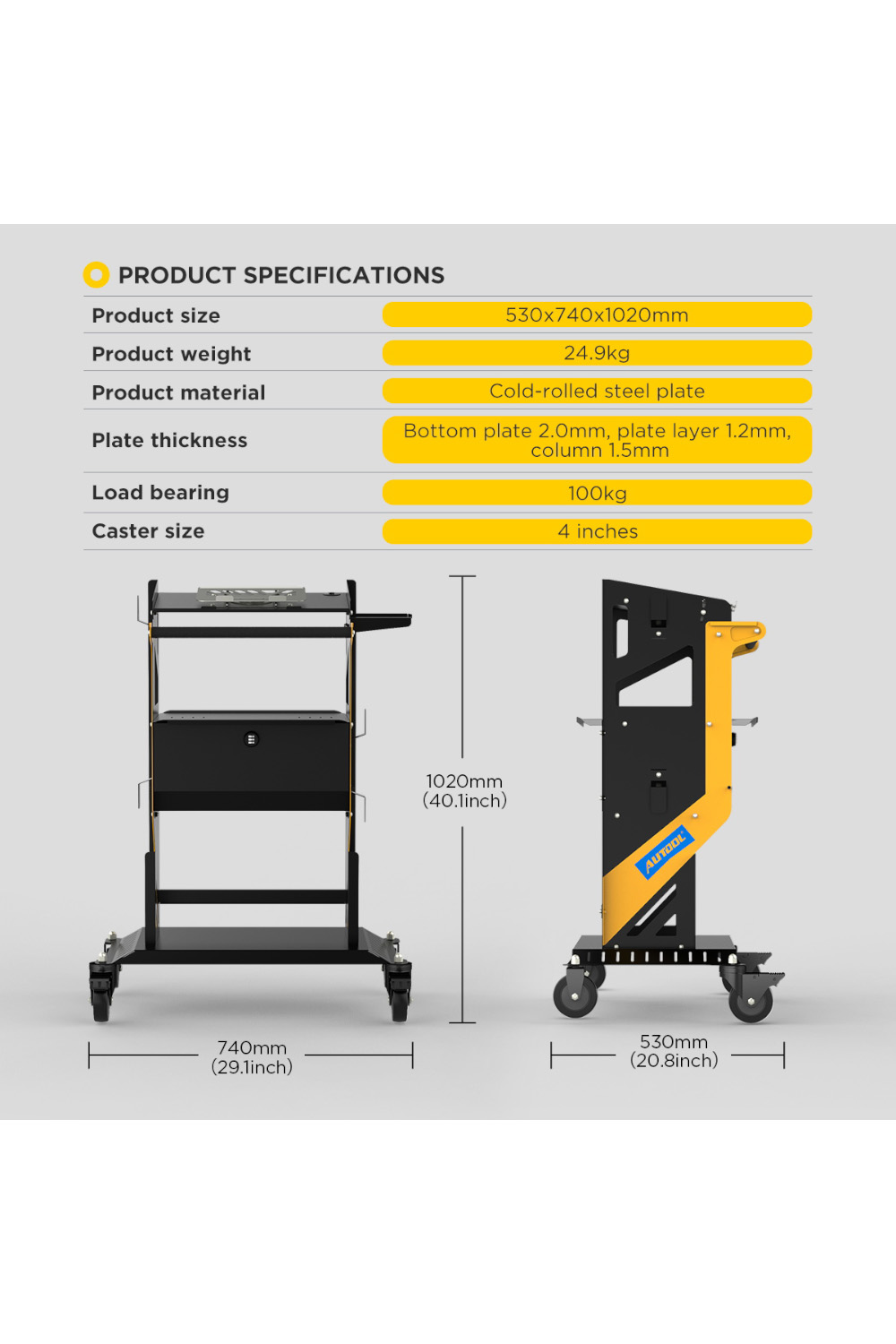 - Veličina proizvoda: 530 x 740 x 1020 mm;