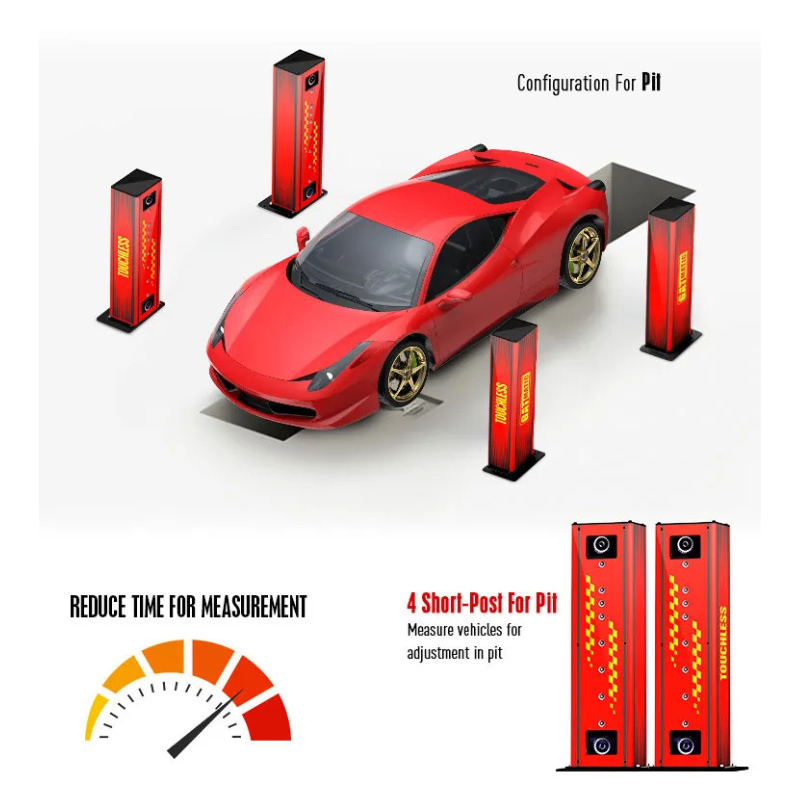 Za razliku od tradicionalnih metoda koje zahtevaju mehanička podešavanja, ovaj savremeni beskontaktni sistem za merenje geometrije prikuplja podatke u realnom vremenu skeniranjem točkova i šasije, obezbeđujući preciznu kalibraciju uglova nagiba (camber), zaturanja (toe) i uzdužnog nagiba osovine (caster).